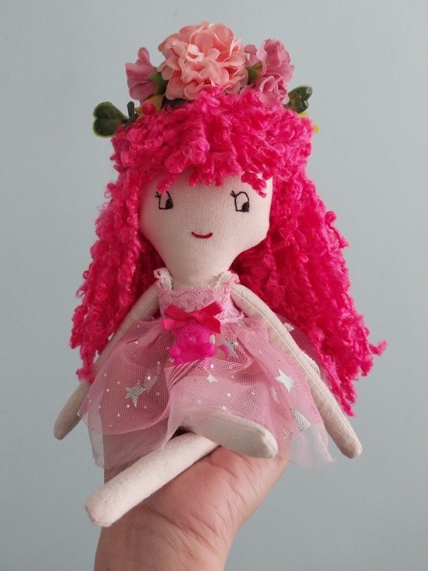Pupet es la muñequita de Paulem, está realizada en tela de lienzo 100% algodón , su carita está bordada a mano, su pelito es de lana y le podés hacer todos los peinados que quieras además viene completamente vestida. Su medida aproximada es de 27 cm