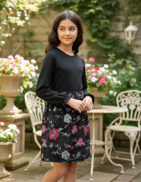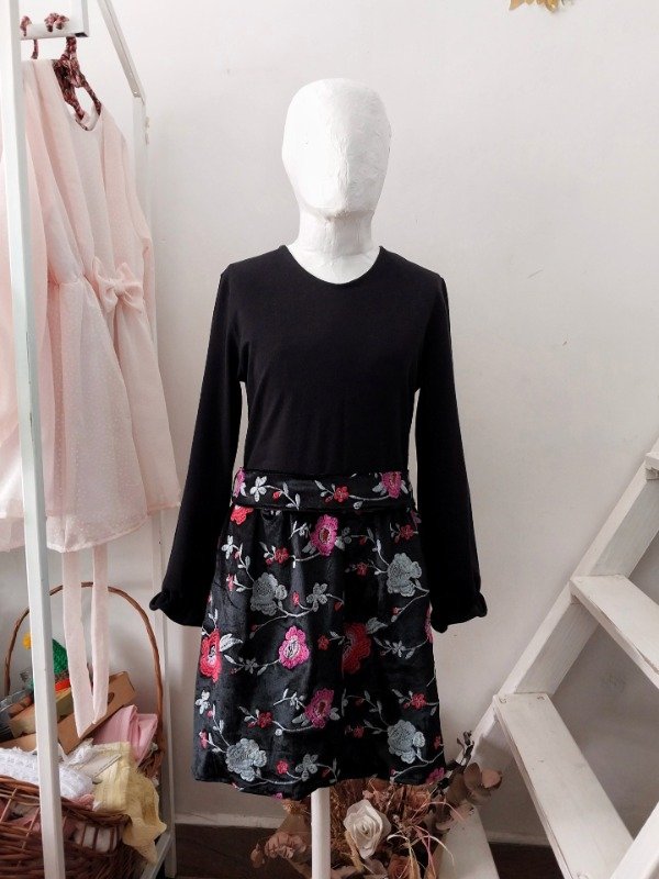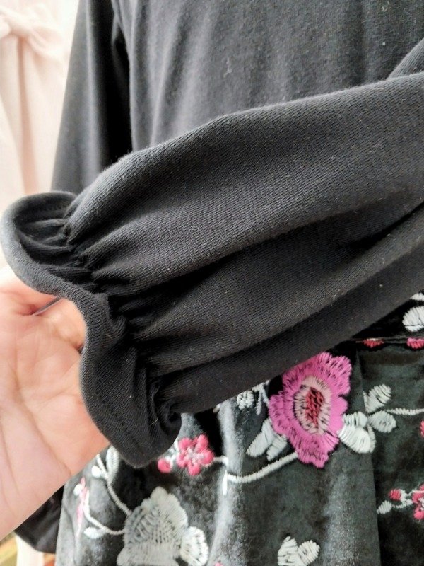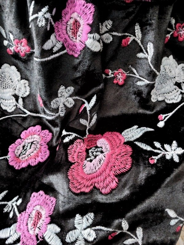 La parte superior es de algodón y la inferior es de un terciopelo elastizado bordado.