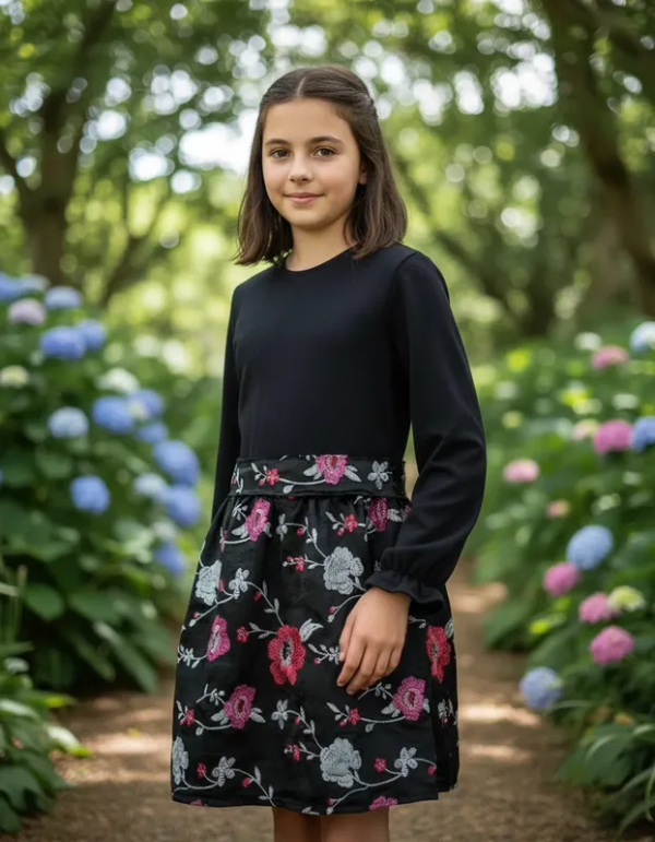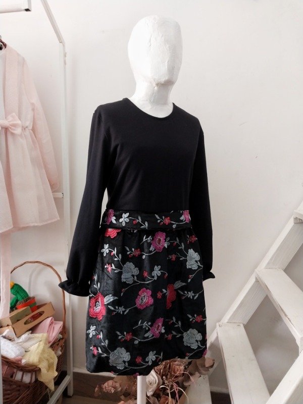 El vestido Rosaura es la combinación perfecta entre comodidad y belleza. Es un vestido que combina dos textiles, ambos de punto, eso quiere decir que la tela se estira y se adapta a los movimientos.